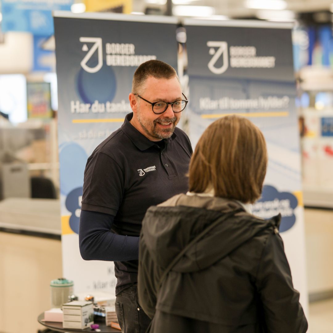 Deltag på events og stande, hvor du taler med borgere om deres hjemmeberedskab og uddeler materialer